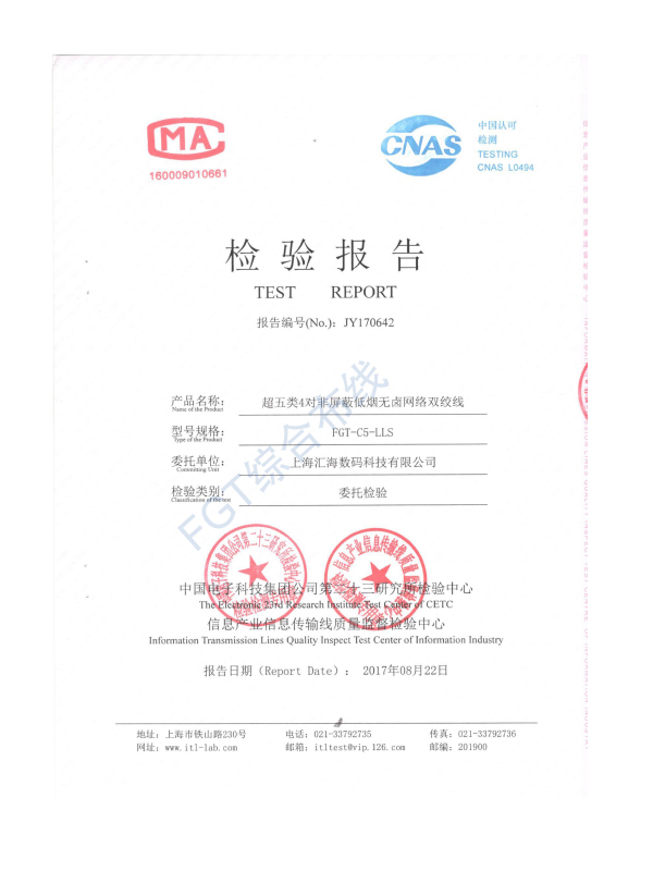 六類4對非屏蔽低煙無鹵網(wǎng)線檢測報告